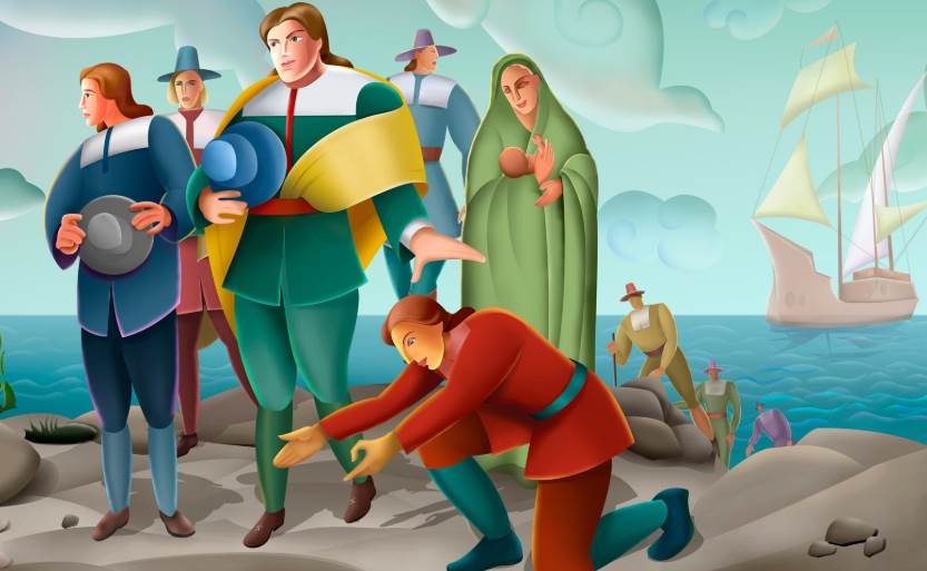 感恩节的由来可以追溯到美国历史的发端,起源于马萨诸塞普利茅斯的早期移民。这些移民在英国本土时被称为清教徒,因为他们对英国教会的宗教改革不彻底感到不满,以及英王及英国教会对他们的政治镇压和宗教迫害,所以这些清教徒脱离英国教会,远走荷兰,后来决定迁居到大西洋彼岸那片荒无人烟的土地上,希望能按照自己的意愿信教自由地生活。