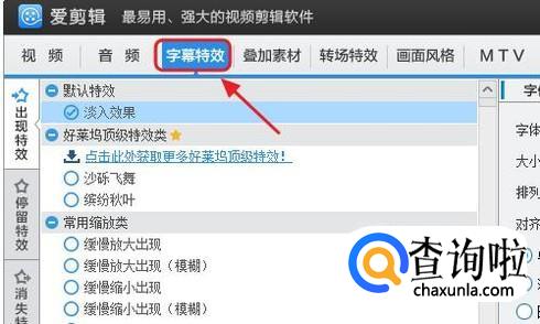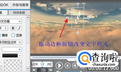 我们还可通过拖动文字周围的按钮改变文字的布局形式,同样的在“字幕特效”里可以给这段水印设置出场效果,最后将这段带有文字水印的视频导出即可;