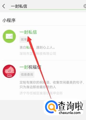 进入之后,搜索“一封私信”,然后点击并进入小程序里面。