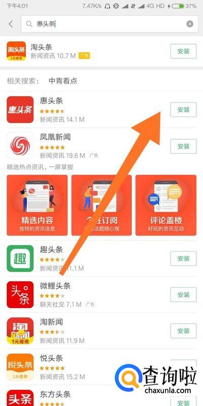 找到需要下载的软件后,点击软件名称右边的“安装”即可。