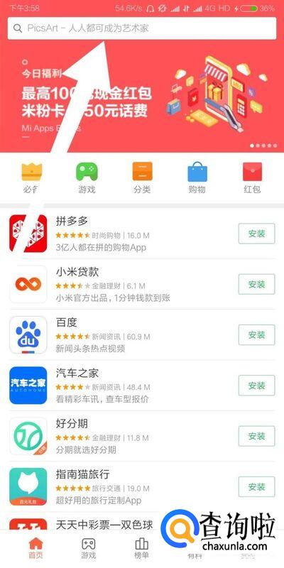 然后我们可以在搜索栏搜索需要下载的手机应用软件。