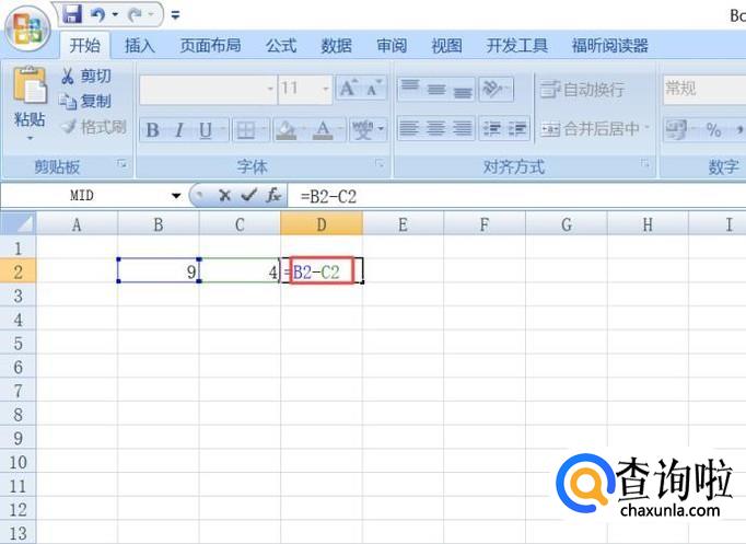 最终结果如图所示,这样我们就算出来两个数字相减的结果了,这个就是减法函数的运用了。
