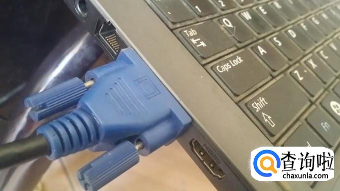 首先打开笔记本,通过视频数据线(图中是VGA线),连接笔记本和外接显示器。