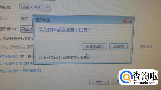 在弹出的询问框中点“保留更改”,之后就会看到外接显示器的正确分辨率显示出来了。