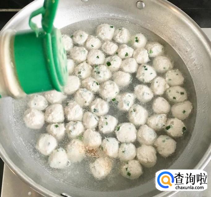 待鱼丸全部下入锅中后改大火煮沸撇去浮沫就成熟了,加入适量的盐调味儿关火,根据个人口味加入适量的白胡椒粉拌匀即可出锅