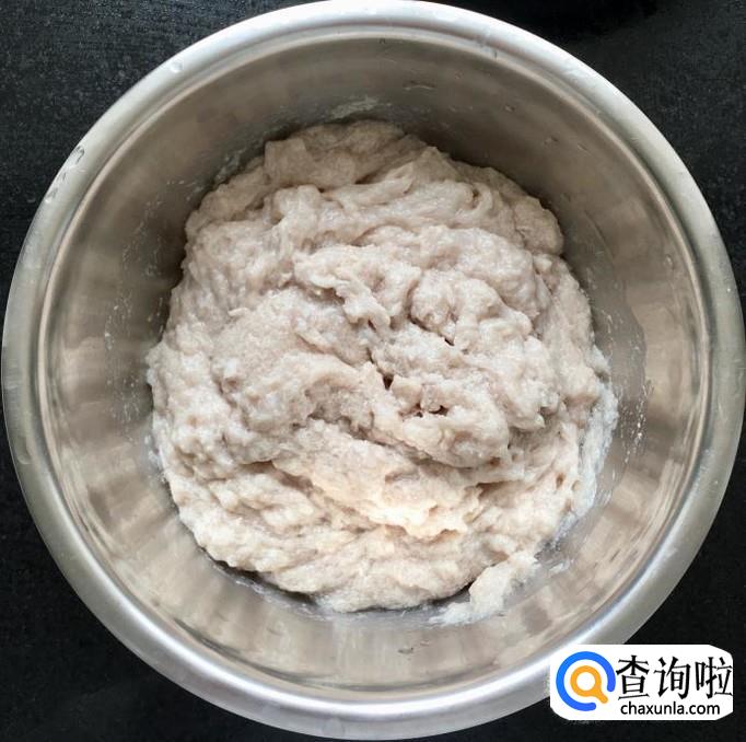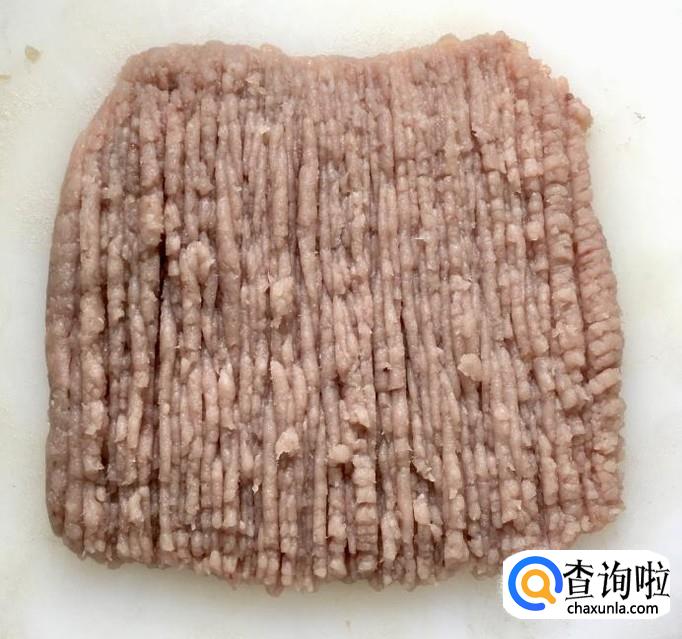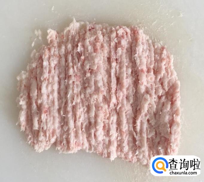 平刀从鲅鱼尾部片向鱼头方向取肉,剔干净鱼刺和鱼皮后剁成肉泥,猪肥肉二两冲洗干净剁成肉泥备用