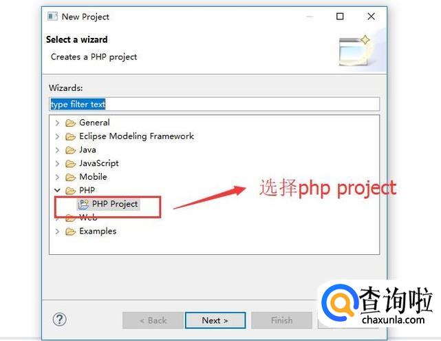 接下来在弹出的新建项目界面中,我们展开PHP文件夹下面的内容,选择PHP Project,如下图所示