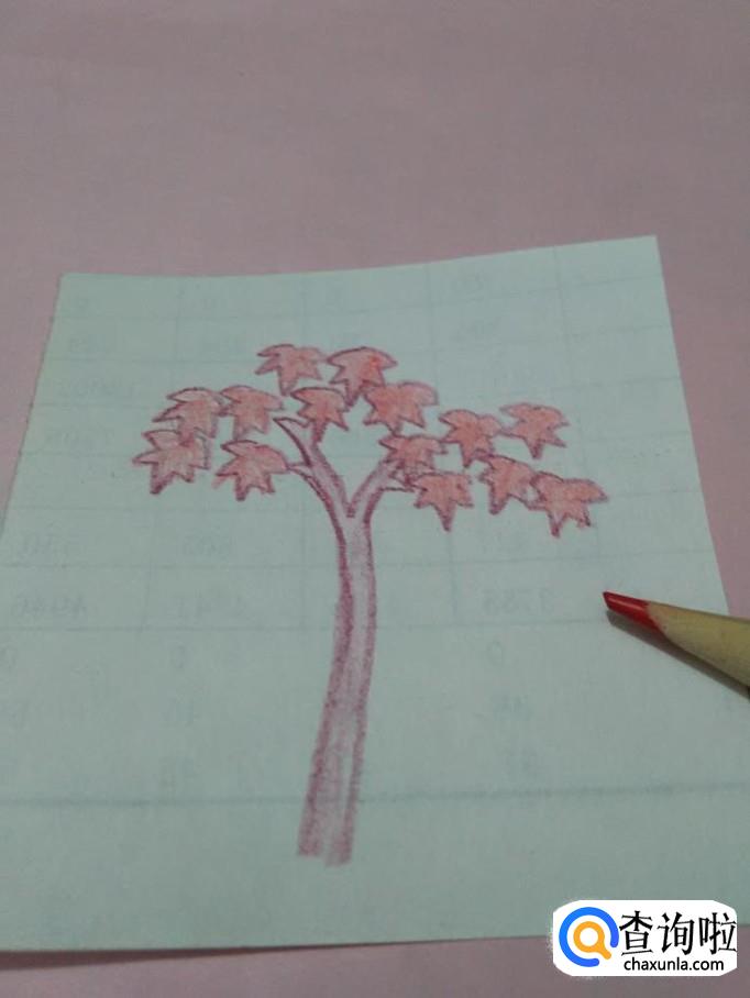 用红色将所有的枫叶涂上颜色,小枫树就画完了。
