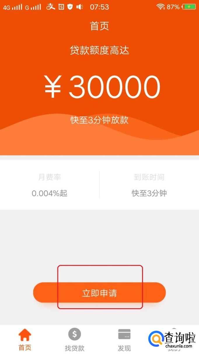 安装完成之后,打开app,页面很简洁,直接点击“立即申请”就可以开始借钱了。