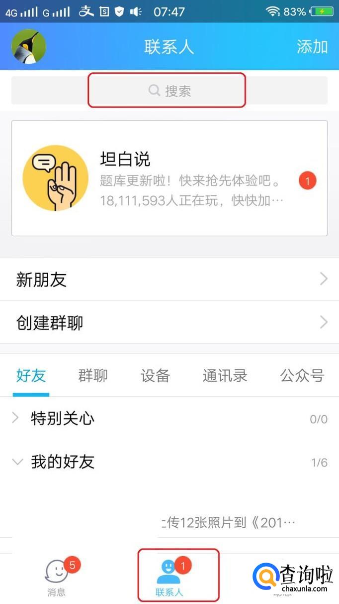 首先,我们需要从正规渠道下载QQ现金贷app,打开手机QQ,点击底部“联系人”。