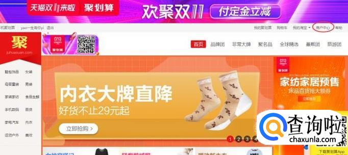 聚划算界面的右上角,点击“商户中心”进入。