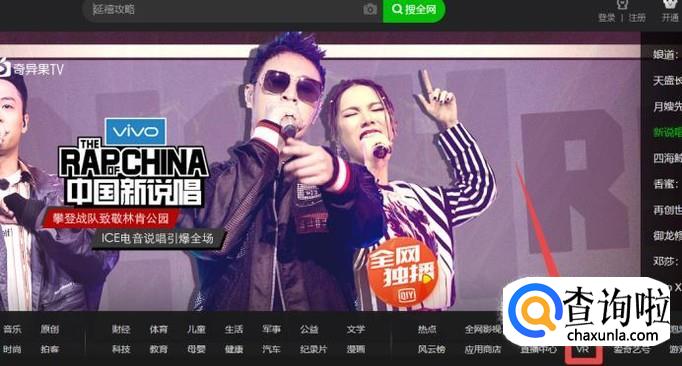 同样打开“爱奇艺”网站 在下面的菜单中单击“VR”就可以进入VR页面了。
