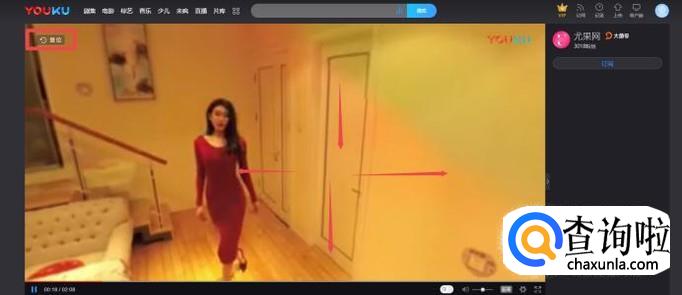 页面中找一个视频,播放后你可以用屏幕视频窗口左上角的“按钮”控制视频的角度。