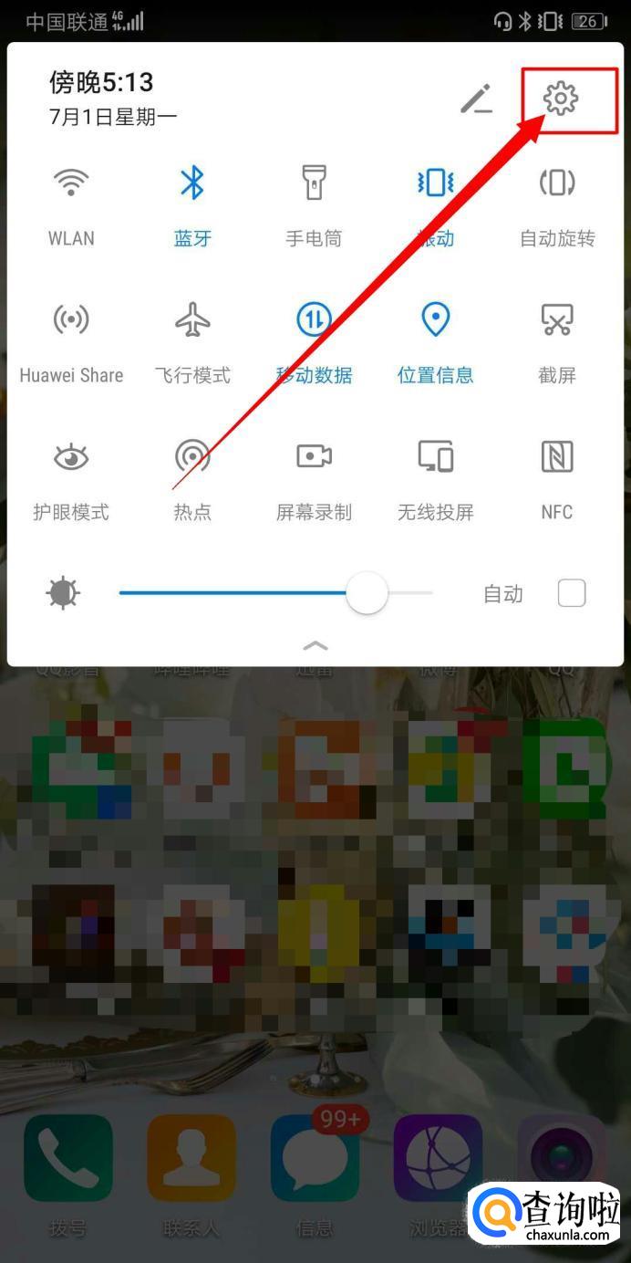 另外一种方法就是在手机页面向下滑动,滑动页面后就能看到快捷菜单栏,在该页面中的右上方点击设置图标按钮,这样就能进入到设置页面,后面按照方法第一种方法中的步骤3-5进行操作即可完成操作。