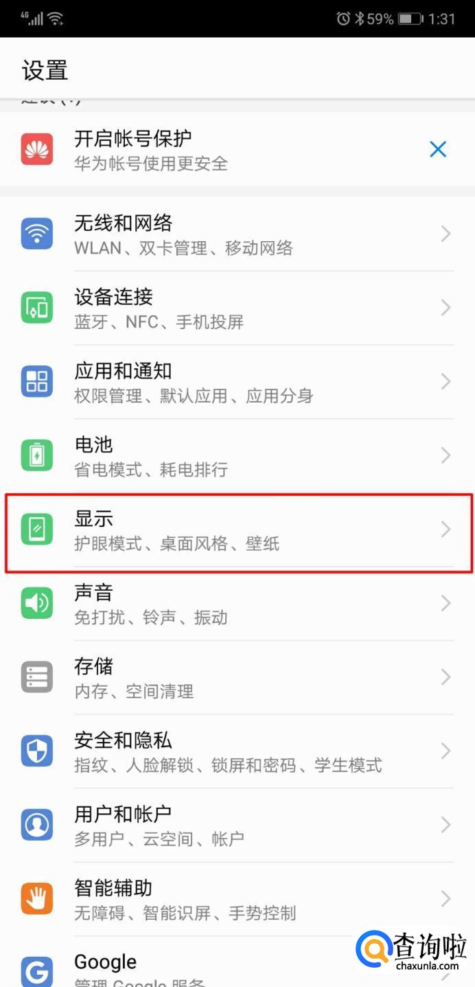 进入设置页面后,在这里选择‘显示’。