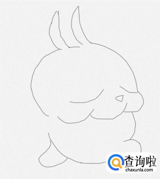 在耳朵的基础上我们再画出流氓兔的头部轮廓图形,如图所示: