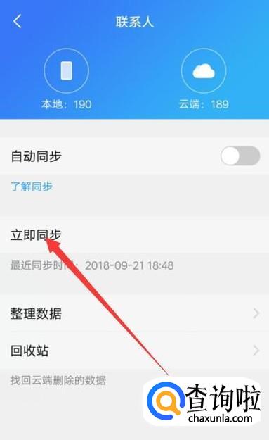 进入之后,选择“立即同步”即可恢复删掉的联系人,如图所示。