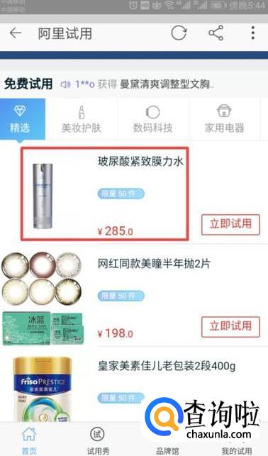弹出的界面,我们下拉界面,找到免费试用,之后点击它;