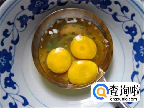 找一个漏勺和一个干净的碗,鸡蛋打开,直接放进漏勺里面,蛋清漏下去了,蛋黄在漏勺里。