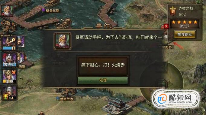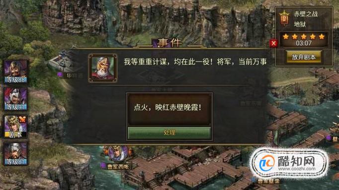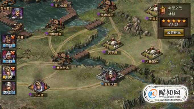 烽火王师是网易代理的策略游戏,在赤壁之战地狱模式剧本里,玩家需要合理的去处理事件和行走合理的路线才可以获得五星剧本。