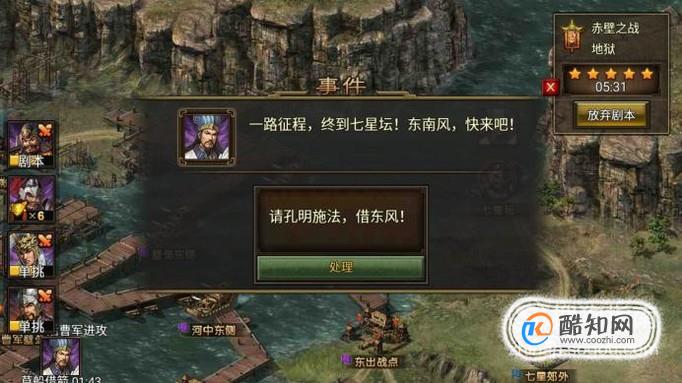 【七星坛】打下就马上去处理事件,不然曹军堡垒事件就不能提前去处理。