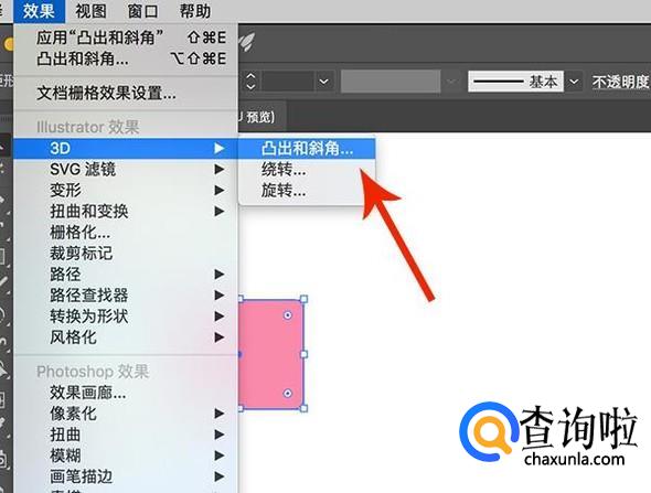 点击矩形形状,然后选择“效果-3D-凸出和斜角”