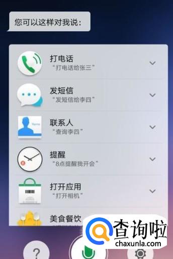 返回到手机主页面,长按菜单键即可打开手机语音助手页面,如图所示。