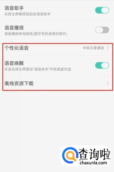 进入设置页面,找到“语音助手”点击并进入,如图所示。