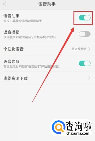 在语音助手页面,向右拖动小滑块即可将其打开,如图所示。