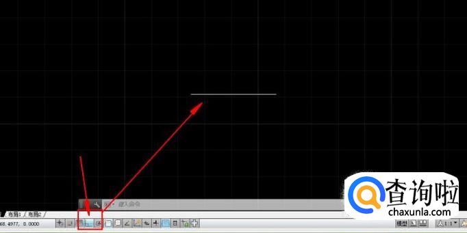 打开CAD,打开正交按钮,画一条直线。