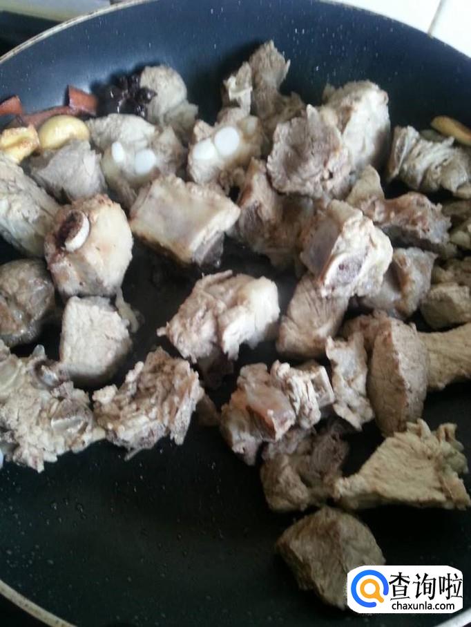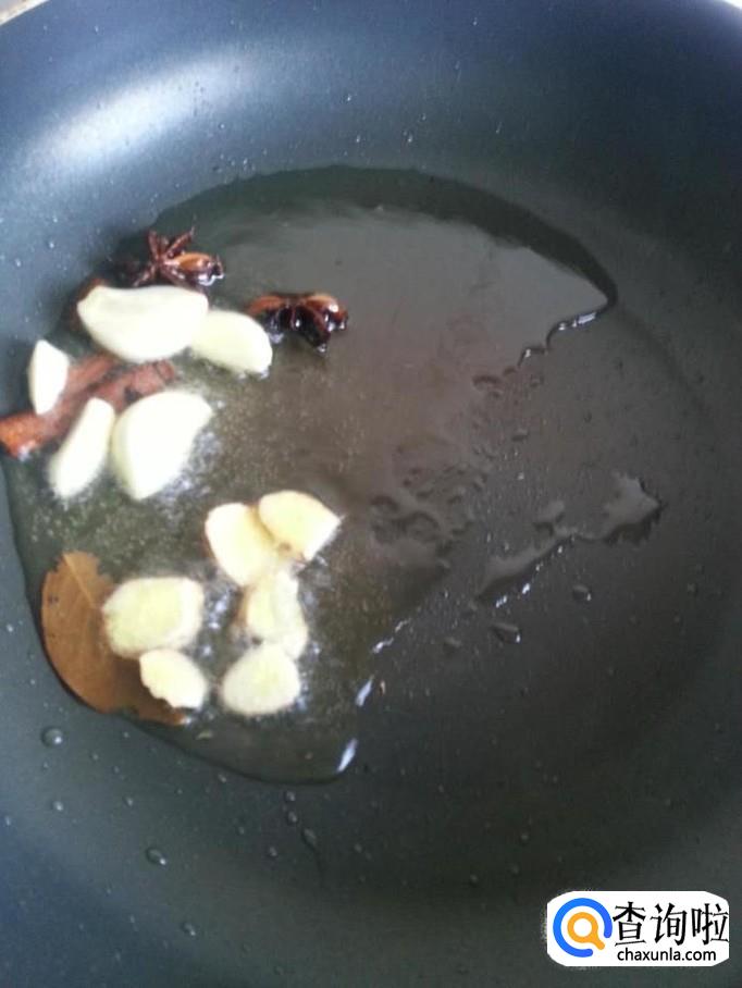 锅烧热,放入大料、香叶、桂皮、姜、大蒜翻炒
