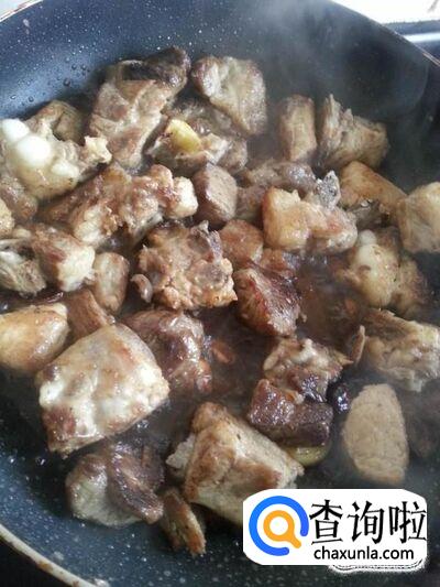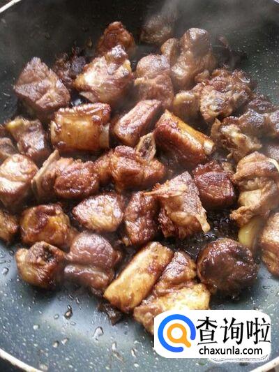 排骨烧至软烂后,大火翻炒收汁