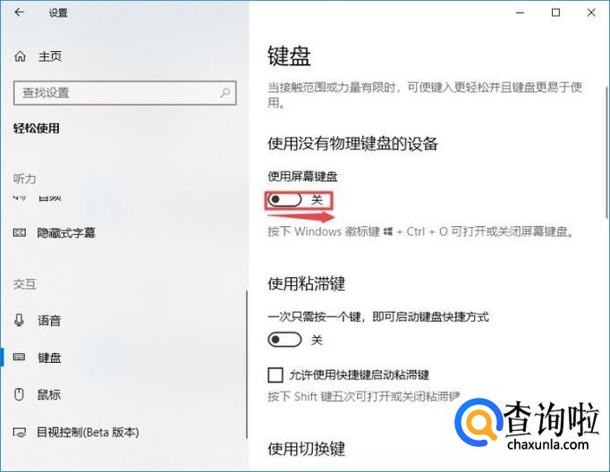 然后我们将使用屏幕键盘的开关向右滑动;