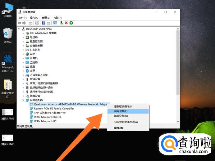 弹出菜单选项后,点击“启用设备”选项即可重启无线网络适配器。