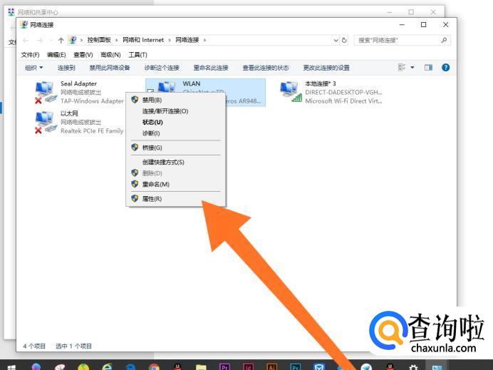 如果重新启用无线网络连接后,电脑仍然不能正常连接WIFI的话,继续鼠标选中“WLAN”,接着单击鼠标右键,点击进入“属性”。