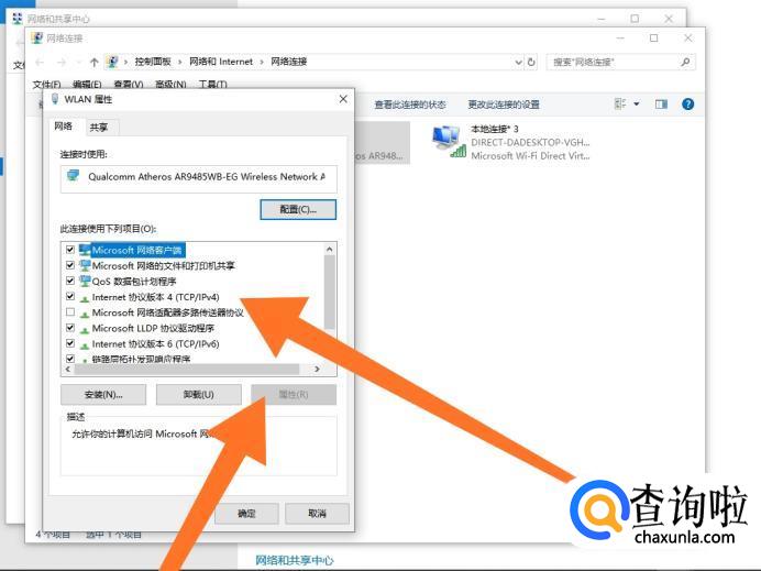 弹出WLAN属性页面后,点击“Internet 协议版本4(TCP/IPv4)”选项,接着点击“属性”选项。
