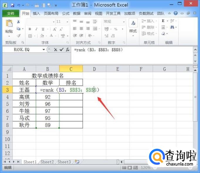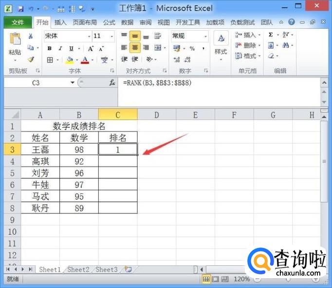 输入函数之后,此时我们可以按下键盘上的回车键,就可以得到排名的结果了,如图所示: