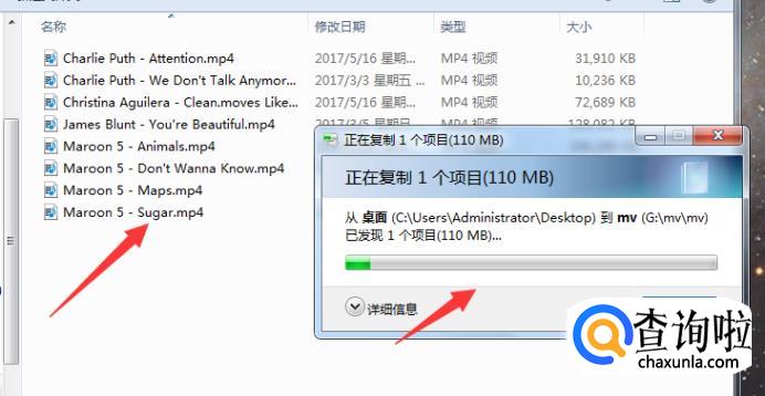 等待视频完全复制进入U盘,这样视频就下载到了U盘里面了。