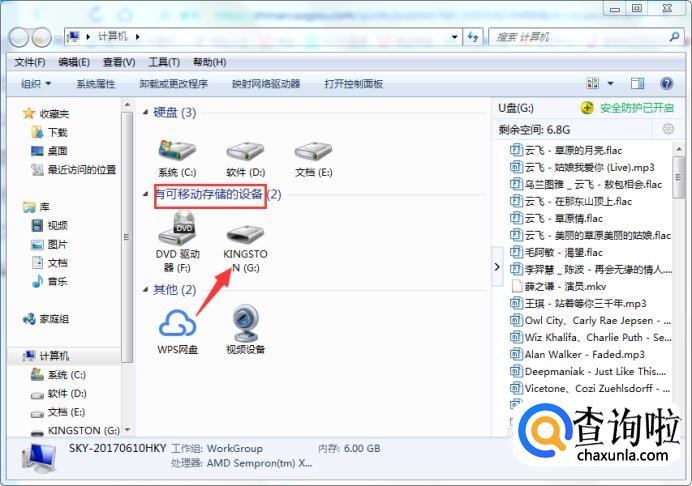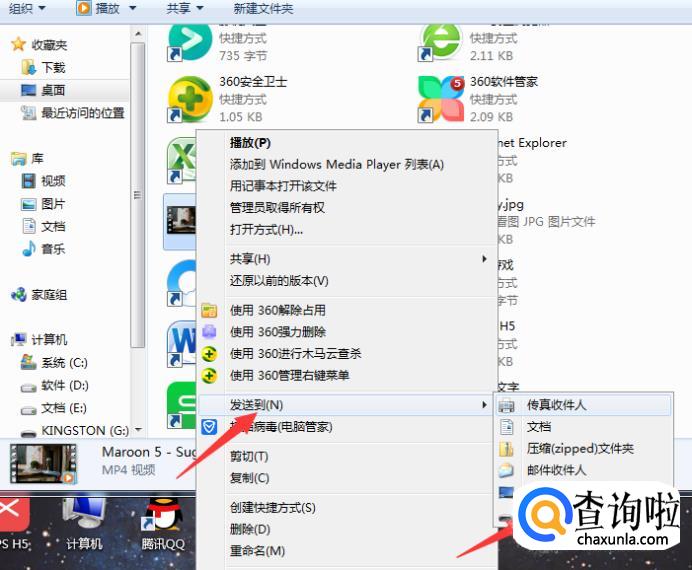 在【计算机】里面找到要移动到U盘的视频,右键点击【发送到】,然后马上会弹出选项栏,在其中选择发送到U盘,等待视频移送到U盘直到完成,这样视频就下载到了U盘里面。