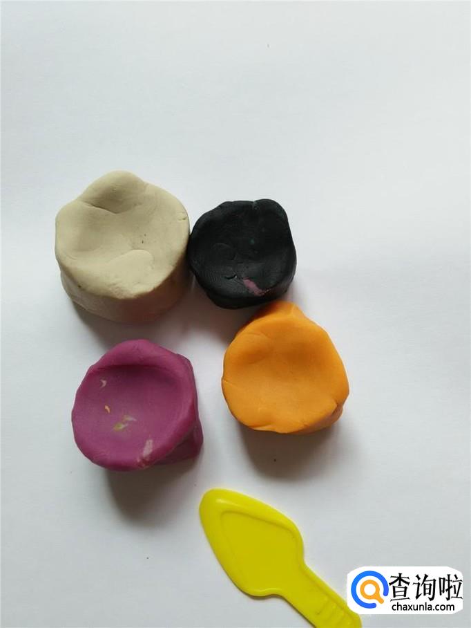 准备四种颜色的太空泥和一把小刀。