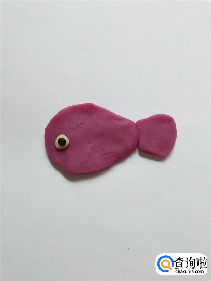 用紫色捏一个梯形,当作鱼的尾巴。