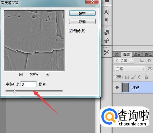 点击高反差保留选项在弹出的对话框内设置参数如图所示: