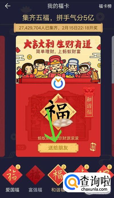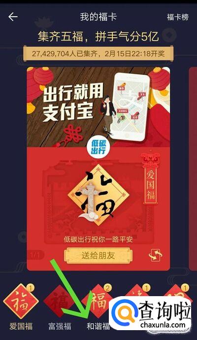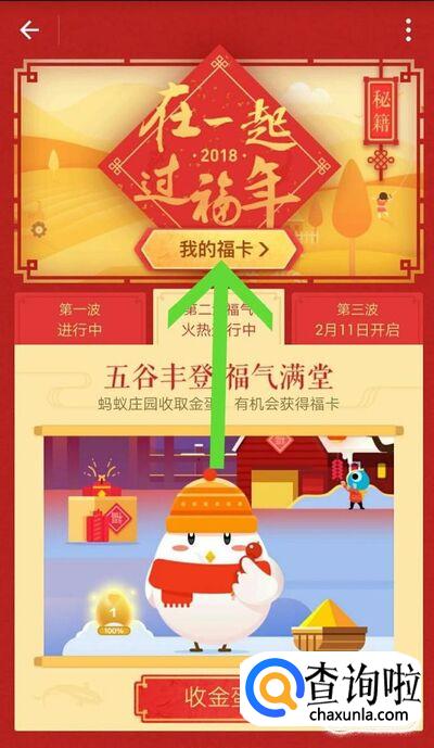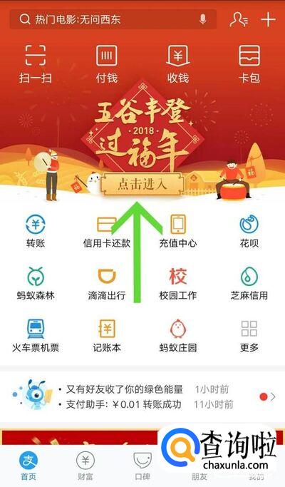 首先打开支付宝,点击进入首页的"五谷丰登过福年"。