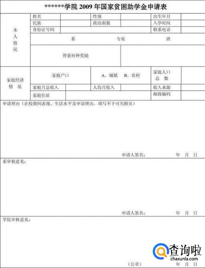 填写国家助学金申请表。确定名额之后,过段时间会再填一个表——国家助学金申请表。一般困难是一年2500元,特殊困难是每年3500元。
