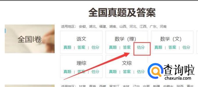 找到全国卷1后,选择一门科目进行估分,以数学(理)为例,如图所示。