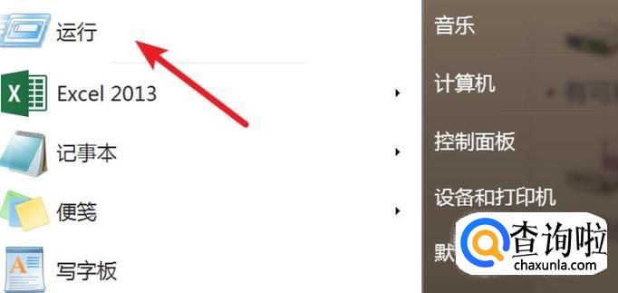 插入U盘后,打开开始菜单上的‘运行’