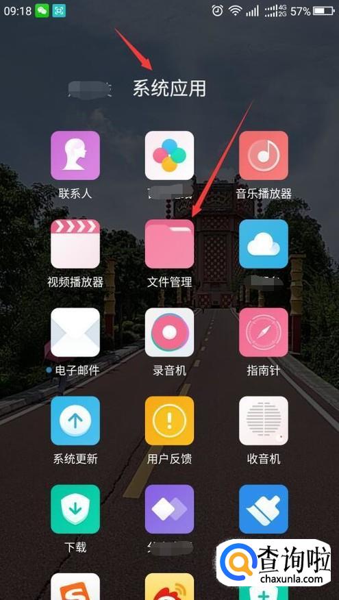 首先,要找到文件管理功能打开,各手机的文件管理位置可能不同。比如我这个在系统应用中。