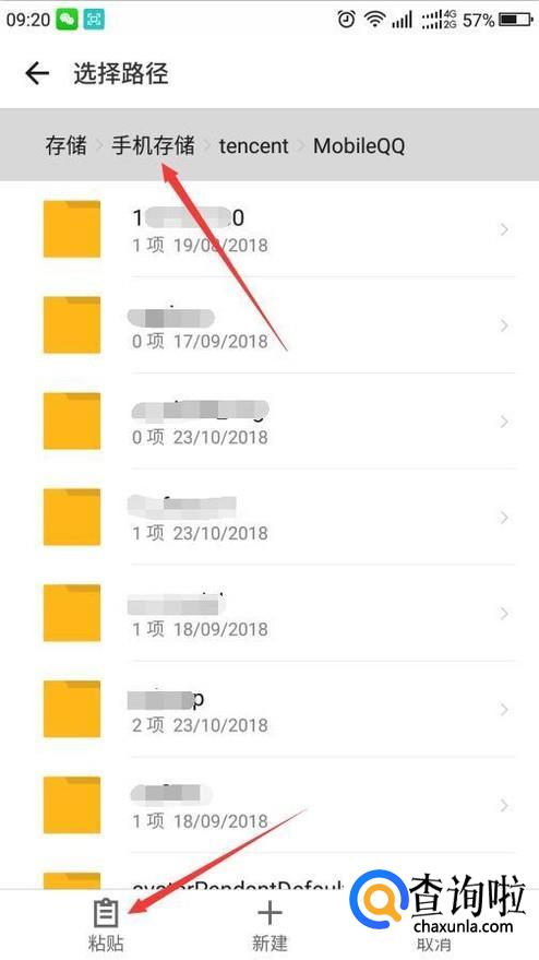 然后点击手机存储选择保存路径,传到另一台手机相同的MobileQQ目录下即可。