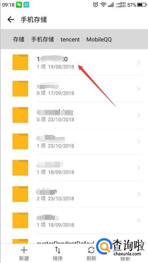 进入后同样滑动屏幕找到自己的QQ号文件夹。