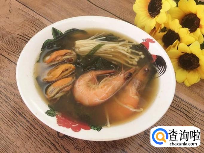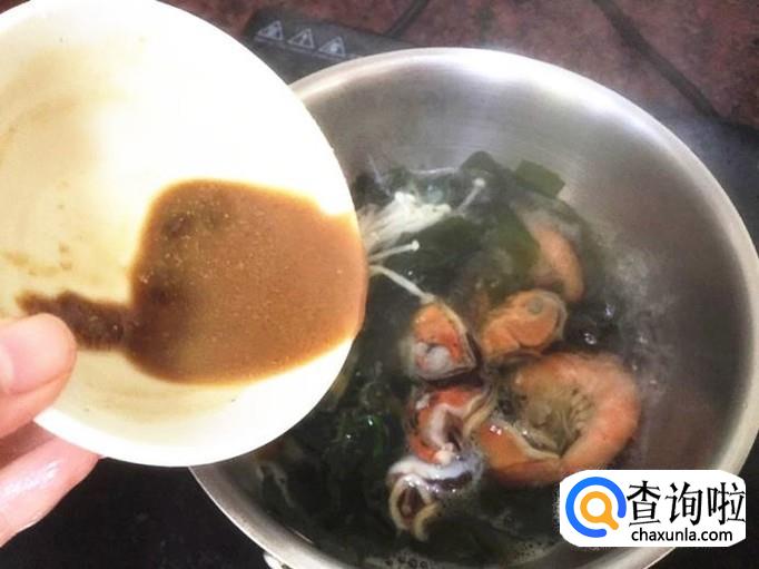 1,鲜虾 2,青口肉 3,裙带菜 4,金针菇 5,味噌 6,生抽